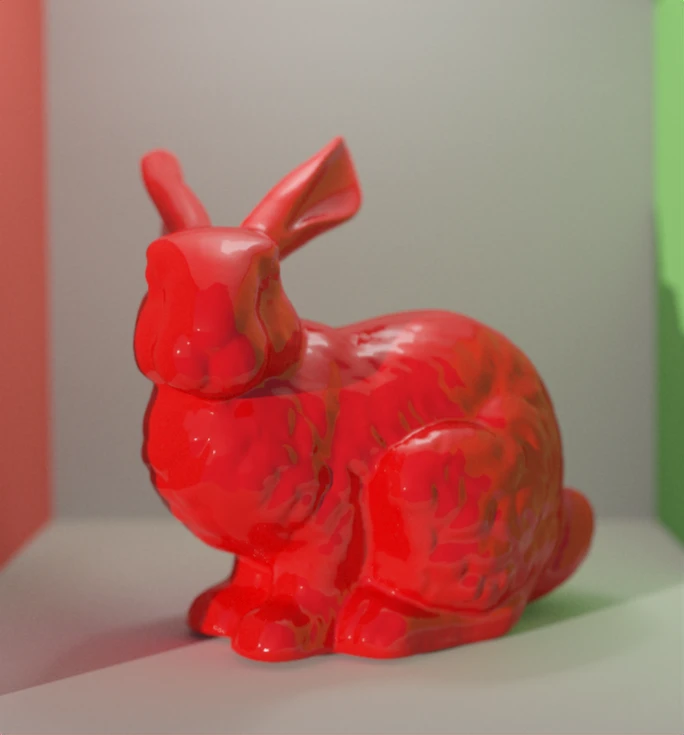 - A BRDF for these material properties, pretty bog standard. Cosine weighted hemisphere sample for the rougher materials and a GGX distribution based lobe for the specular.