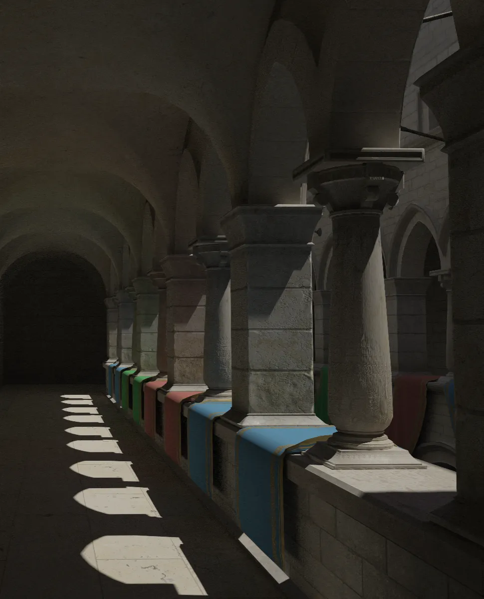 [W][A][S][D]and[Q][E]for +Z, -Z respectively.[SHIFT]for a speed up. The camera also contains a basic thin lens approximation. - Since WebGPU doesn't have bindless textures, the suggested way of doing textures is a storage buffer. This would require generating mipmaps on the host. I just stack the textures and call it a day here.